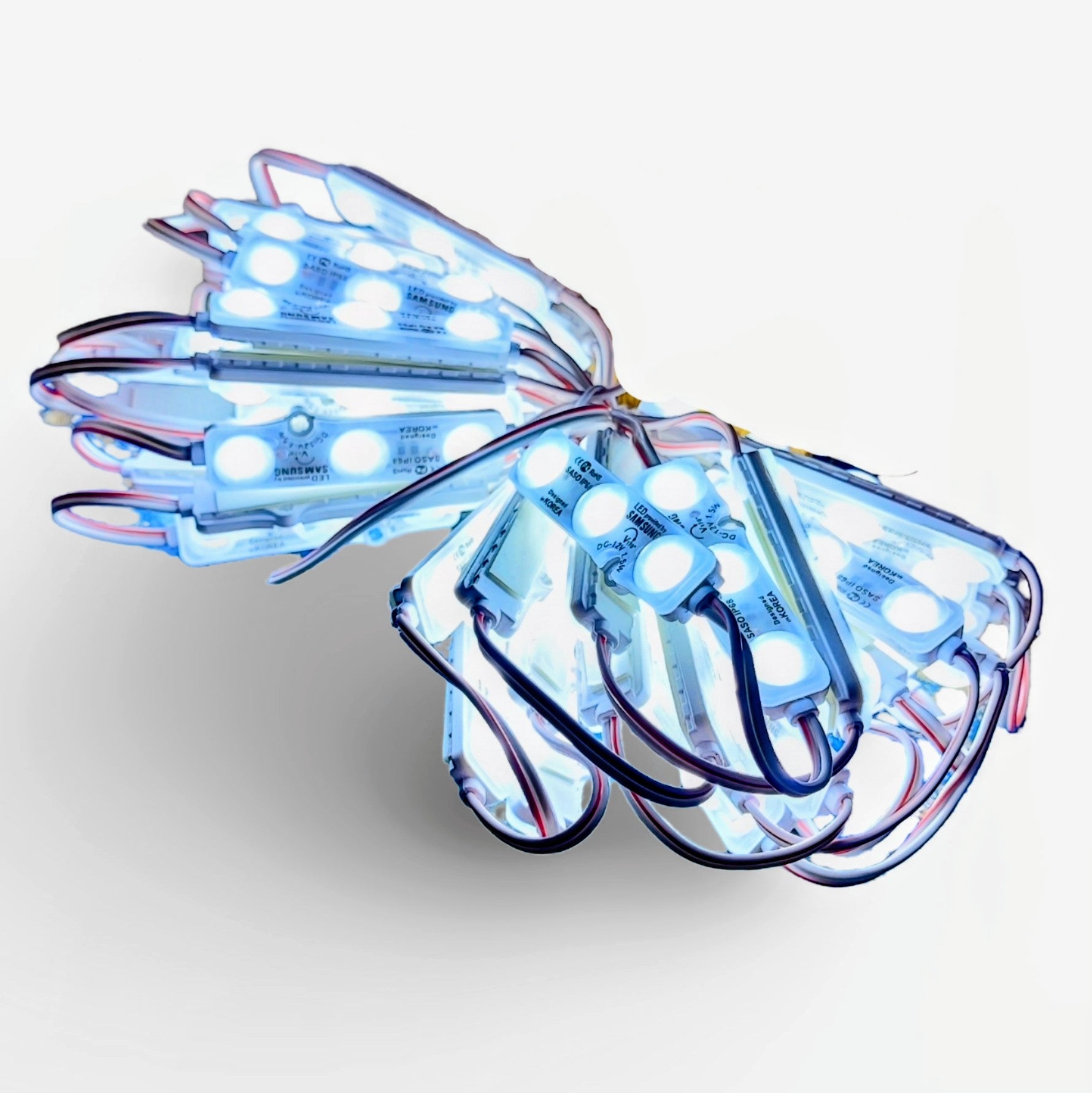WARNING: To avoid voltage drop, do not exceed 40 modules in series from 12v power source. Not sure what thickness wire to use for your project to ensure no overheating or failure? Contact us!